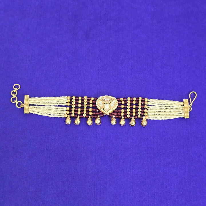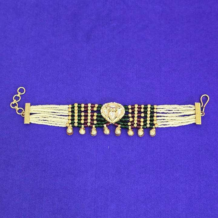 303345 Kundan Moti Bracelet With Carat Gold Plating