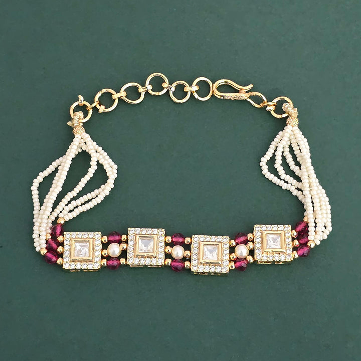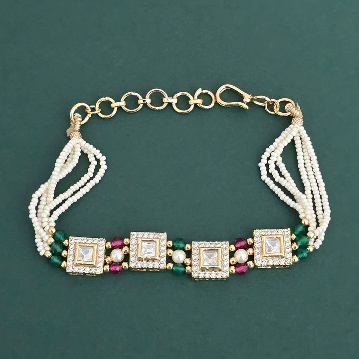 Weight: 11.0 Grams, Length = 7 Inch,Adjustable Bracelet,Gold Plating,Kundan Bracelet