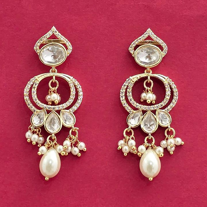 352343 Kundan Moti Earring With Carat Mehndi Plating