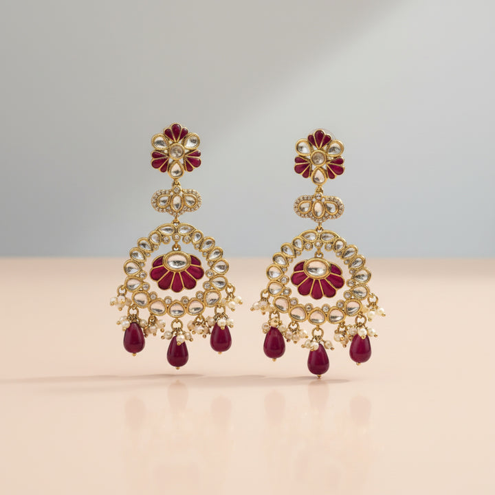 Weight: 28.0 Grams, Height = 70 mm || Width = 40 mm,Elegant Look,Mehndi Plating,Kundan Earring