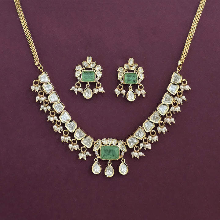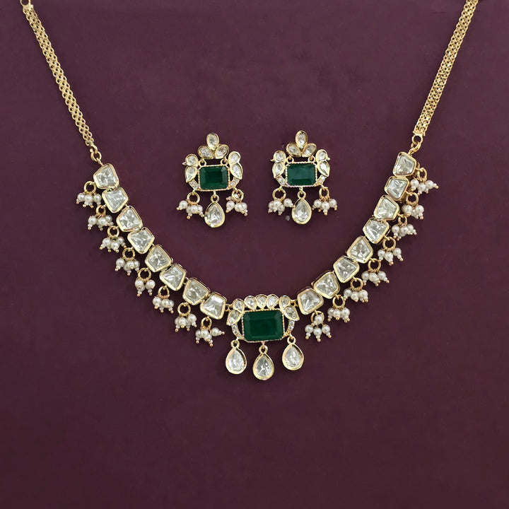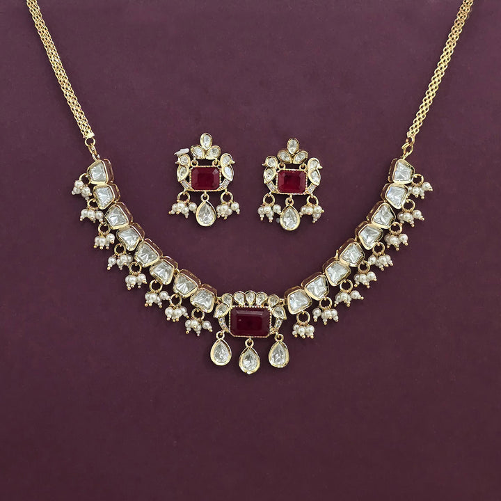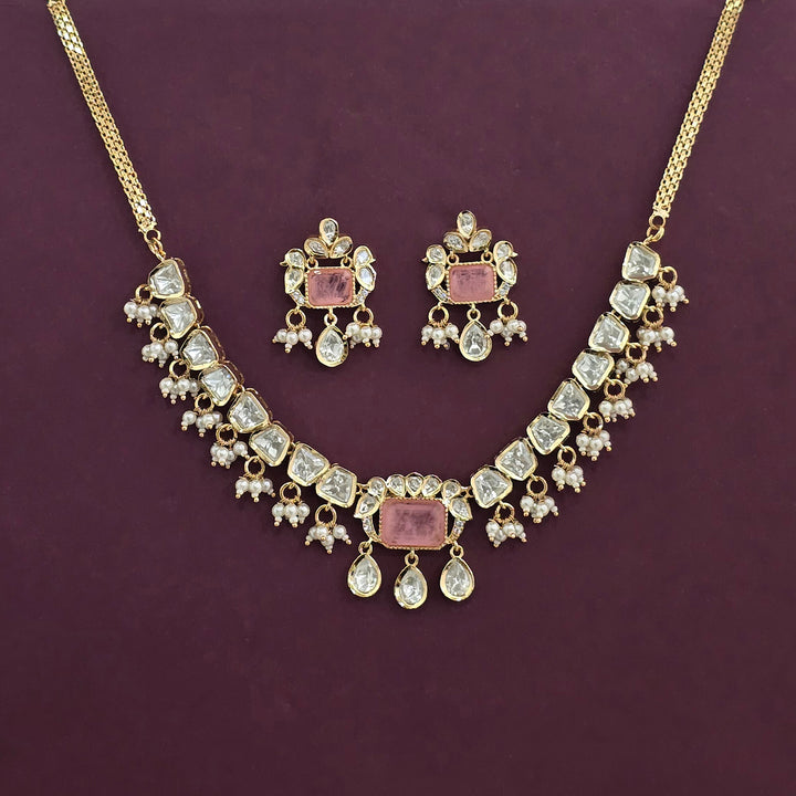 303221 Kundan Moti Necklace With Carat Gold Plating