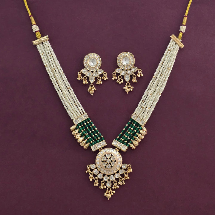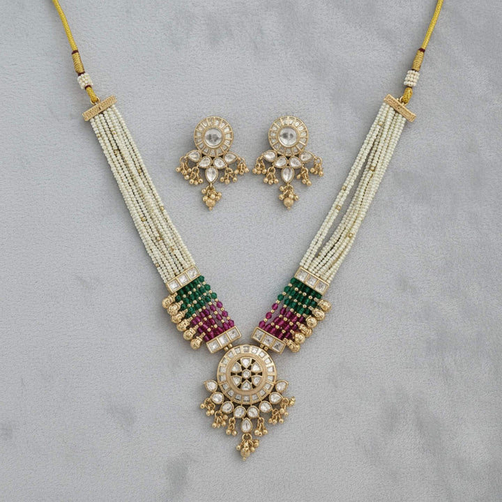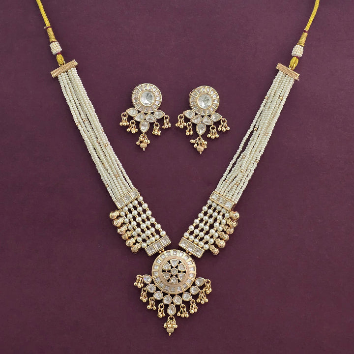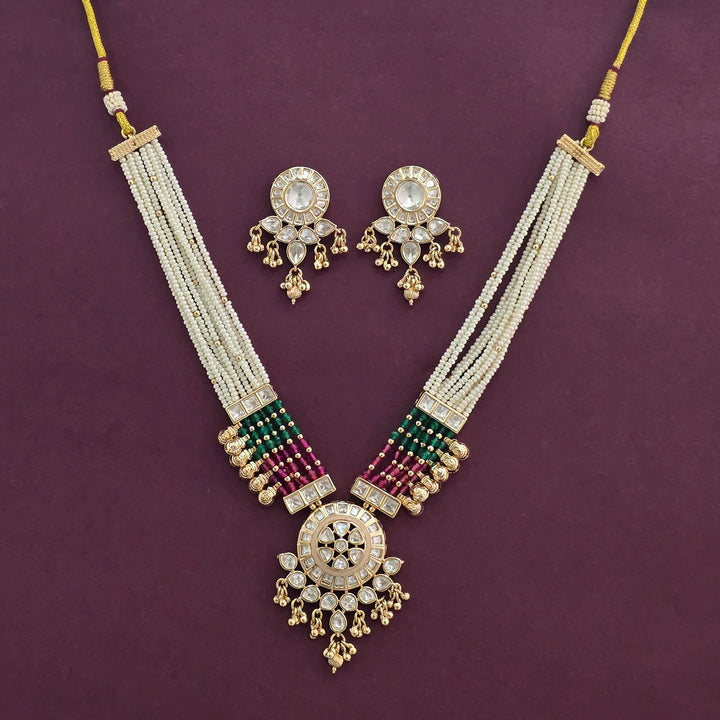 303254 Kundan Moti Necklace With Carat Gold Plating