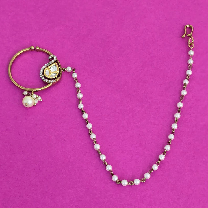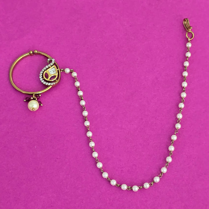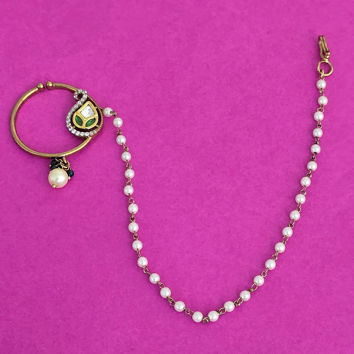 303053 Kundan Moti Nose Ring With Mehndi Plating