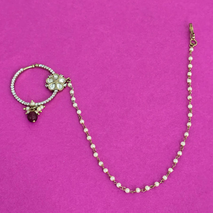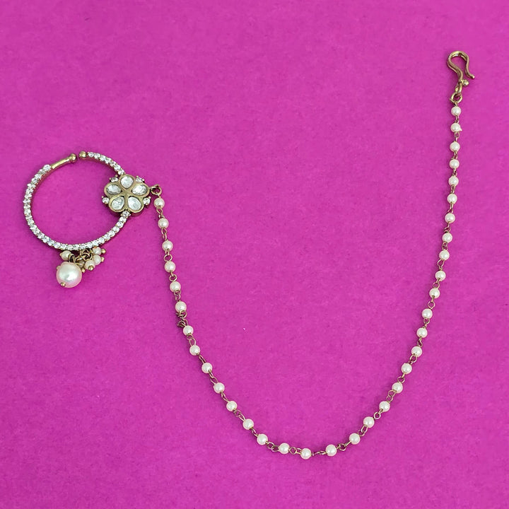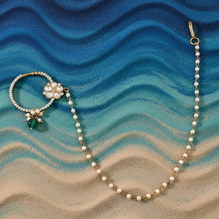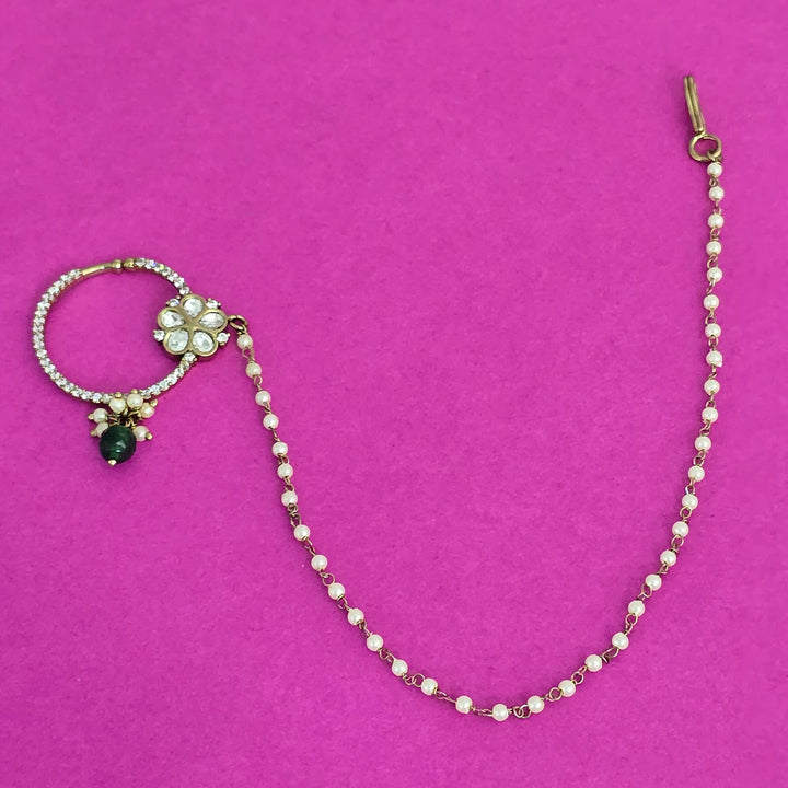 303057 Kundan Moti Nose Ring With Mehndi Plating