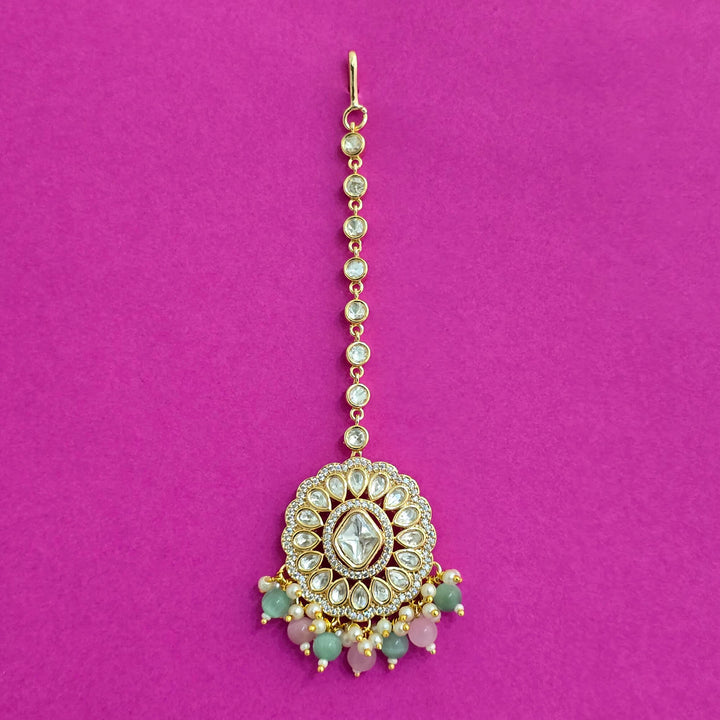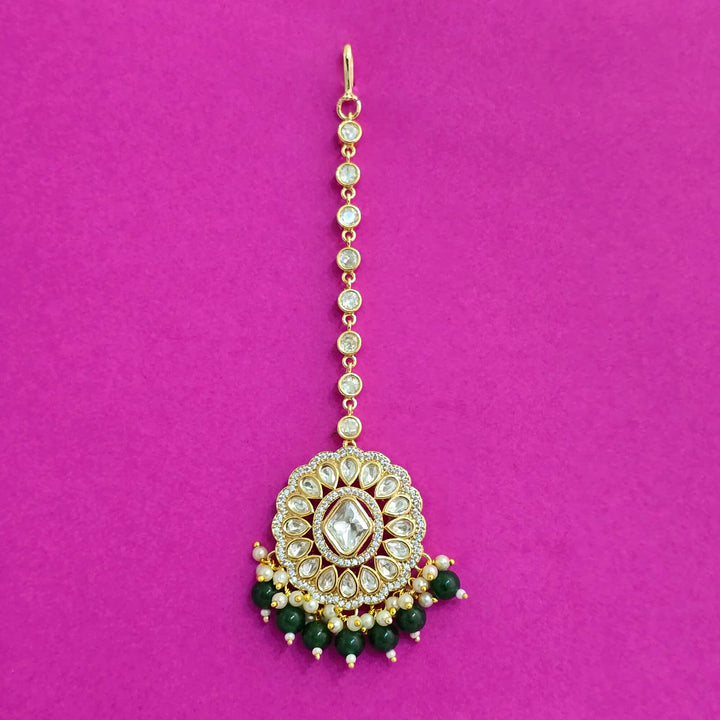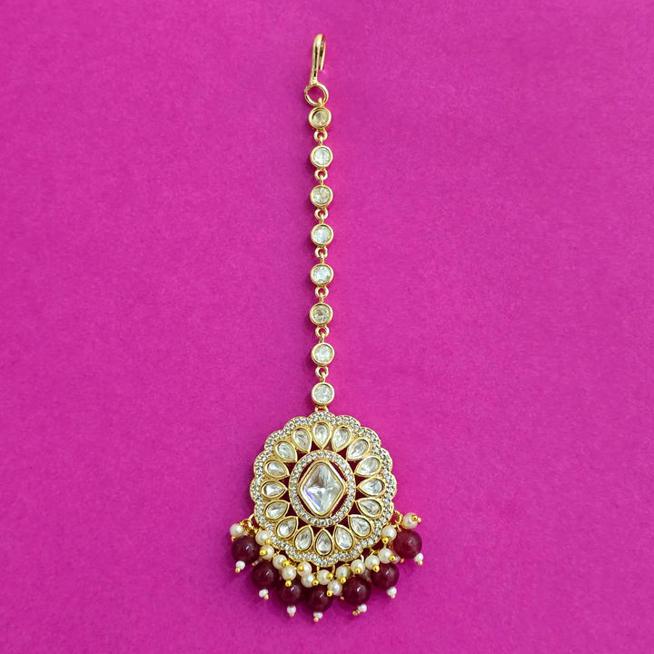 Weight: 23.0 Grams, Height = 135 mm || Width = 45 mm,Latest Design,Carat Plating,Kundan Maang Tikka