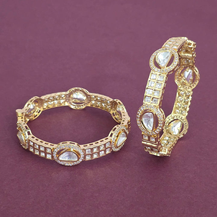 303327 Kundan Openable Bangles With Carat Gold Plating
