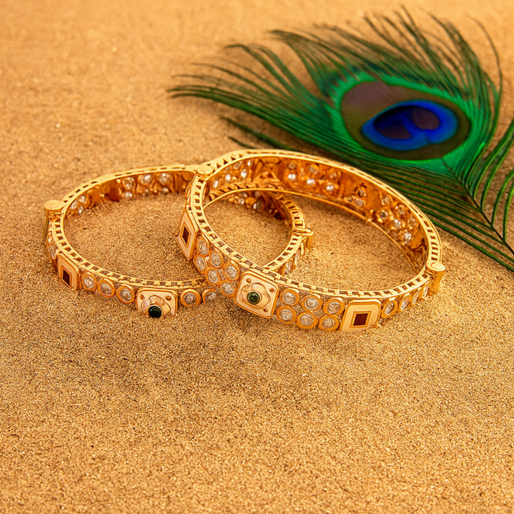 Weight: 56.0 Grams, 2 Pc Bangle,Handmade Design,Kundan Bangle