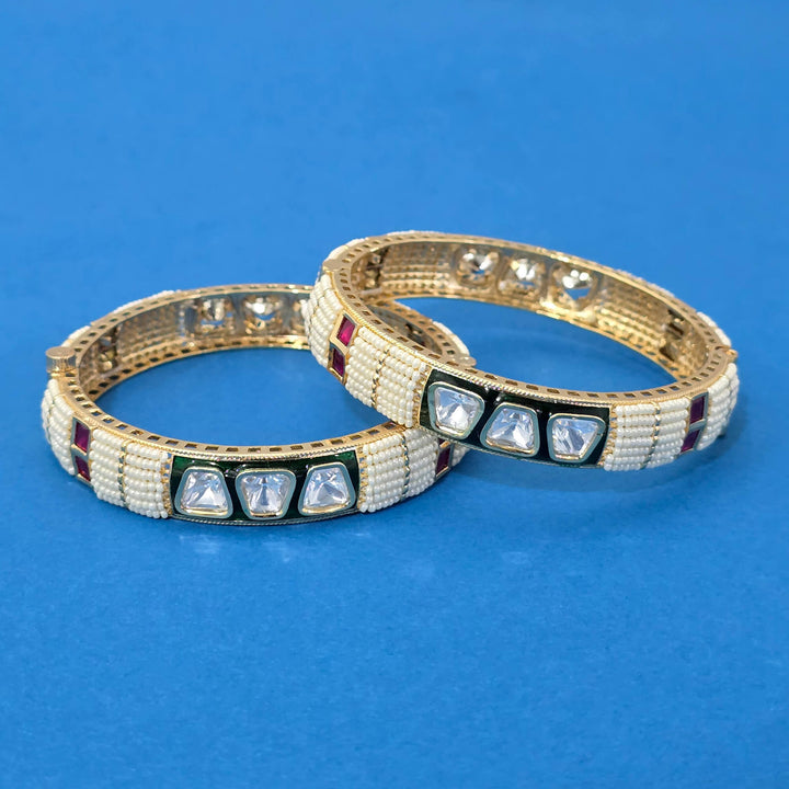 Weight: 57.0 Grams, 2 Pc Bangle,Classic Bangle,Gold Plating,Kundan Bangle