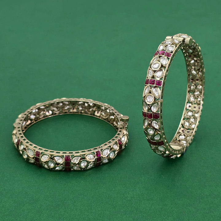 Weight: 57.0 Grams, 2 Pc Bangle,Classic Design,Mehndi Plating,Kundan Bangle