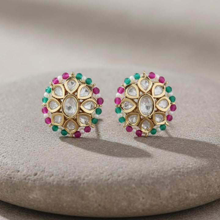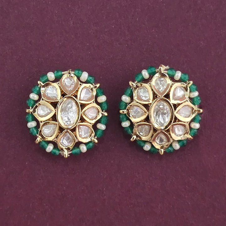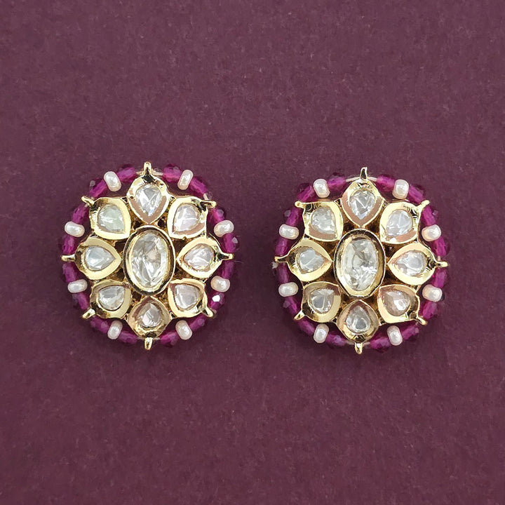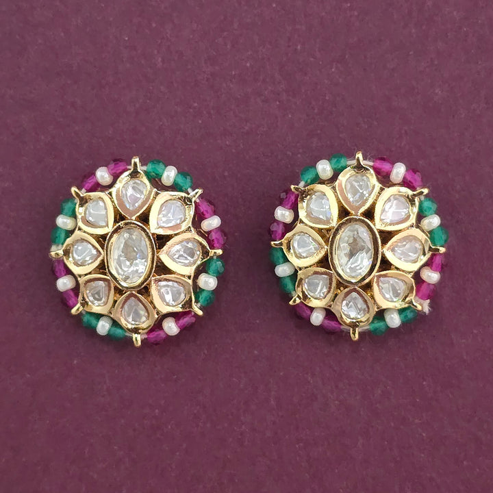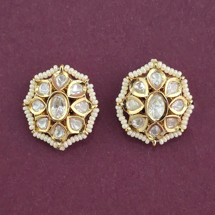 Weight: 8.0 Grams, Height = 20 mm || Width = 19 mm,Big Stud Earring,Carat Plating,Kundan Earring