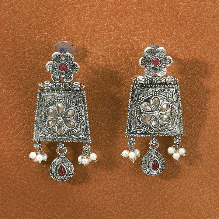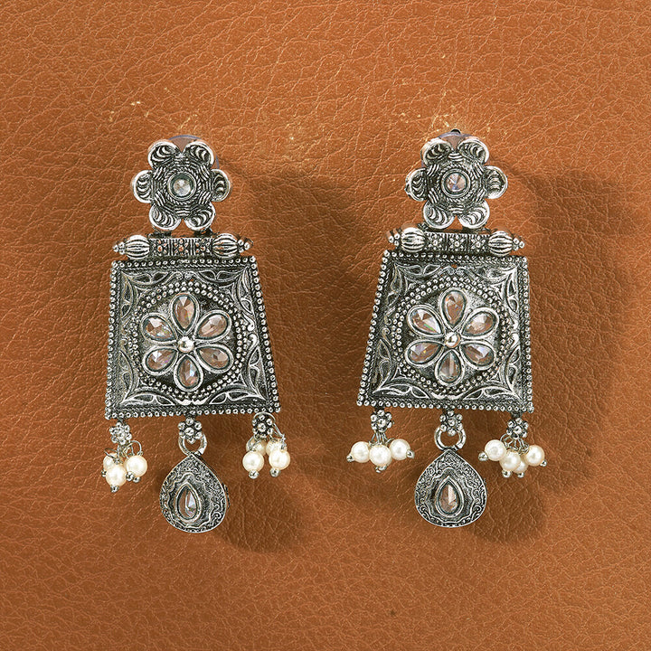 807197 Pearl Earring With Oxidised Plating